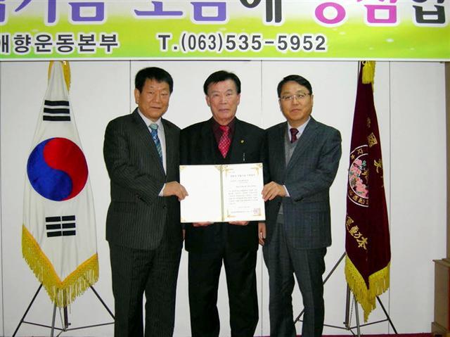 정읍시농협조합공동사업법인 박근완 대표와 샘골농협 정태호 조합장이 지난20일 (사)정읍시애향운동본부를 방문, 서울장학숙 건립기금으로 100만원을 기탁했다.