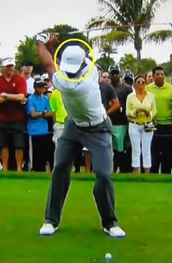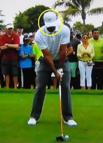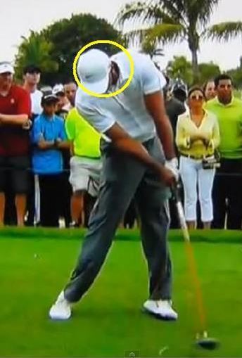그리고 사진3은 임팩트 순간 머리 움직임이다. 머리가 어드레스 때의 위치에 놓여 있는 것이 중요하며, 아마추어 사진과 같이 머리가 원 속에 있지 않으면 많이 움직인 것으로 간주해야 한다.