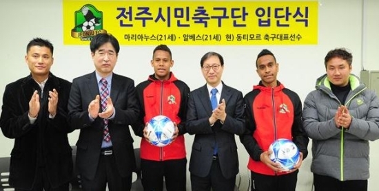 전주시민축구단(구단주 한평희)은 2010년 6월 개봉된 ‘맨발의 꿈’의 실제 주인공인 동티모르 마리아누스(21세)와 알베스(21세) 입단식을 지난 18일 가졌다.
