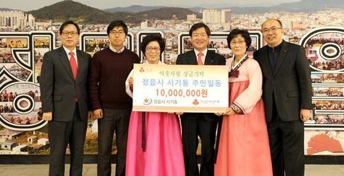 시기동(동장 김종삼)에 따르면 통장협의회는 소년소녀가장, 독거노인, 저소득층, 장애인, 다문화 가정 등 생활이 어려운 이웃을 돕기 위해 지난해 12월 16일 시기동주민센터에 성금모금 창구를 개설하고 ‘장터마을 일일찻집’을 운영, 마련한 1400만원을 전북사회복지공동모금회(회장 이종성)와 성금기탁 창구가 개설된 언론사에 각각 전달했다.