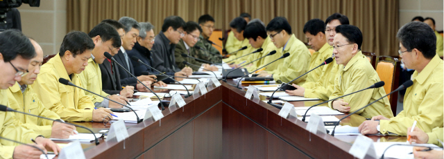 27일 전북도청 종합상황실에서 에 김완주 도지사를 비롯한 서해안 7개 시·군 부단체장 등 참석자들이 방역대책회의를 갖고 있다. 사진 제공= 전북도