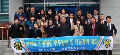 이현복 서부지방산림청장이 6일 정읍국유림관리소(소장 이영선)를 연두 방문, 업무보고를 청취하고 직원들을 격려했다.