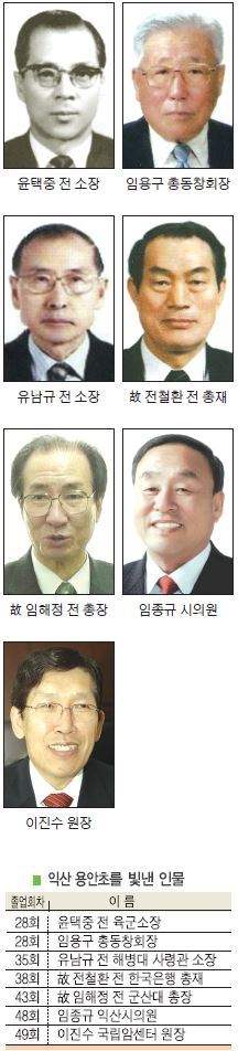 유독 정계 인맥이 약한 용안초는 4선을 한 임종규 익산시의원(48회)이 유일하며, 법조계도 졸업연도가 불명확한 김영진 창원지검 검사장만이 손에 꼽힌다.