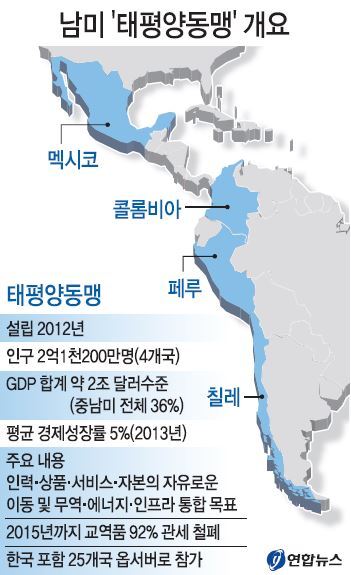 후안 마누엘 산토스 콜롬비아 대통령, 엔리케 페냐 니에토 멕시코 대통령, 세바스티안 피녜라 칠레 대통령, 오얀타 우말라 페루 대통령은 9∼10일(정상회의) 콜롬비아 카르타헤나 데 인디아스에서 정상회의를 열고 이같이 합의했다고 중남미 뉴스를 전하는 텔레수르 등이 보도했다.