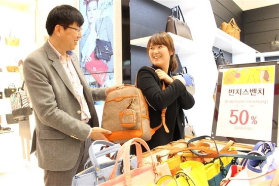 MCM, 메트로시티, 닥스, 루이까또즈, 제이에스티, 빈폴, 러브캣 등 유명브랜드 핸드백을 10~30% 할인 판매하며, 덤으로 상품권 등 사은행사도 병행한다.