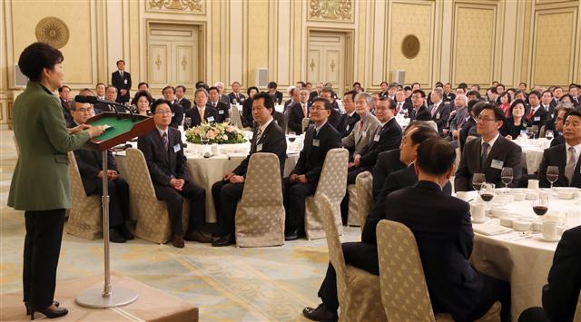 ▲ 박근혜 대통령이 19일 오후 청와대 영빈관에서 열린 전국 대학총장 만찬 간담회에서 인사말을 하고 있다. 연합뉴스