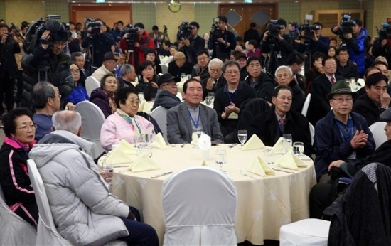 2014년 설 계기 이산가족 상봉을 하루 앞둔 19일 오후 강원도 속초 한화콘도에서 1차 상봉 대상자들과 가족이 방북교육을 받기 위해 모여있다. 이산가족들의 대면 상봉은 2010년 11월 이후 3년 3개월 만이다. 연합뉴스