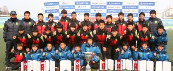 전북현대 산하 U-15팀인 금산중은 22일 군산 월명종합운동장에서 열린 저학년부 결승전에서 거제동부중학교를 3-0으로 제압하고 창단후 첫 전국대회 우승을 차지했다.