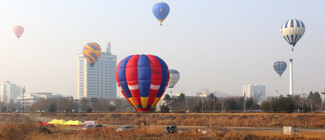 한국열기구협회와 (주)SM레저산업이 주최한 전국열기구대회가 22일 전북도청 앞 수변공원에서 열린 가운데 형형색색의 대형 열기구들이 하늘로 올라가며 장관을 이루고 있다.