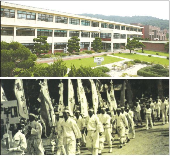 ▲ 정읍제일고 전경(위)과 학생들의 동학농민혁명 재연 행사. 사진제공=정읍제일고