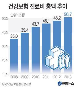 지난해 국민건강보험 진료비 총액이 사상 처음으로 50조원을 넘어섰다. 노인 진료비는 9.3% 대폭 늘어난 17조 5283억원으로 전체 진료비의 34.5%를 차지했다.
