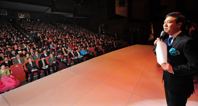 ▲ 25일 오후 전북대학교 삼성문화회관에서 열린 김승수 전주시장 예비후보‘두근두근 전주 36.5℃’출판기념회에서 김승수 예비후보자가 인사말을 하고 있다. 안봉주기자 bjahn@
