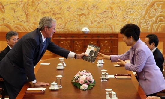 한편 박 대통령은 청와대에서 부시 전 미국대통령을 접견했다. 박 대통령은 “오늘 회의(아시안리더십컨퍼런스)에도 참석해 주시고, 퇴임 후에도 세계 평화번영을 위해서 아주 왕성한 활동을 펼치면서 한미동맹 강화를 위해 노력해 줘서 감사하다"며 “재임기간 한미동맹 강화를 위해 노력을 많이 해줘서 북핵문제는 물론이고, 아프간과 이라크에서의 양국이 긴밀한 공조를 하면서 이 동맹이 글로벌 파트너쉽으로 성장하는 발판이 되었다"고 강조했다.