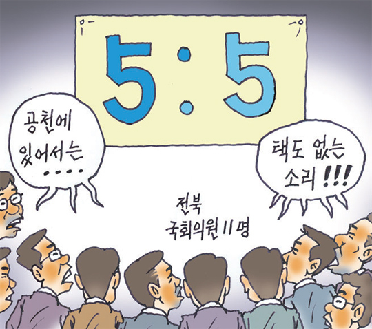 만평 - 5:5〈공천에 있어서는… vs 택도없는 소리!!〉