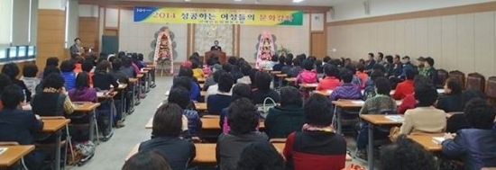▲ 정읍 신태인농협이 운영하는 여성 문화강좌에서 참석자들이 강연을 듣고 있다.