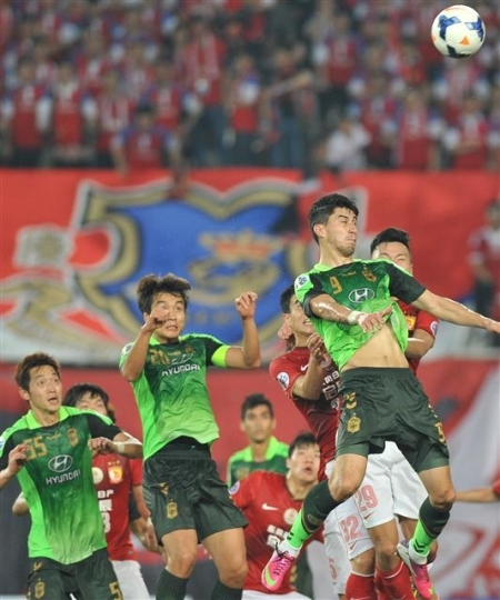 전북의 초반 분위기는 나쁘지 않았다. 특유의 활발한 공격을 펼치며 광저우를 당황하게 만들었다.