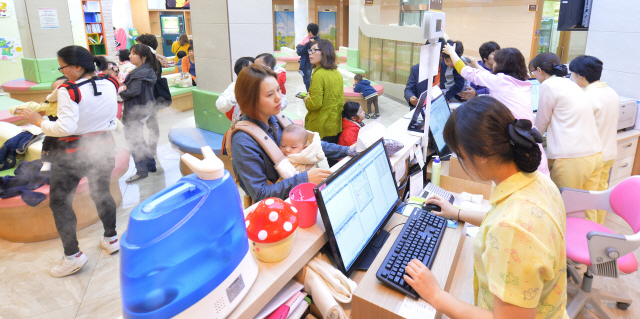 봄철 나들이객 증가와 황사 및 미세먼지의 영향으로 감기환자가 급증하고 있는 가운데 19일 전주 효자동 한 소아과에 많은 환자들이 진료를 받기 위해 기다리고 있다.
