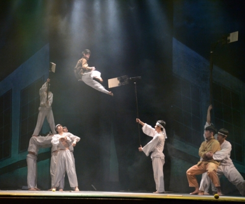 한 배우가 새처럼 날아올라 관객들을 마주한다. 이번에는 다른 출연자들을 디딤돌 삼아 4~5m를 비상하며 송판들을 쪼개버린다. 배우들의 겨루기가 10합 이상 이어지고, 팔과 다리가 맞부딪힐 때마다 관객들의 탄성이 커진다. 닌자차림의 배우들이 2층에서 줄을 타고 내려와 무대에 오르는가 하면, 배우들이 단체로 무대에 올라 절도있는 품새를 선보인다. 한시간 동안의 공연을 지켜보면서 관객들은 수시로 다리와 주먹에 힘이 들어간다.