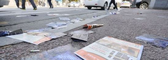 20일 전북대학교 구정문에 새학기를 맞아 각종 홍보 전단지가 인도 및 도로에 버려져있어 미관을 해치고 있다.