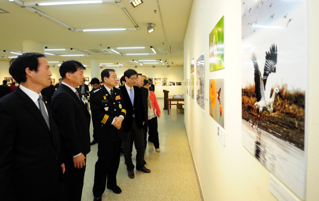 한국사진기자협회 전북지부(지부장 신상기)의 남원보도사진전이 24일 남원춘향문화회관 전시실에서 열린 가운데 참석자들이 보도사진을 보고 있다. 남원사진전은 29일까지 열린다.