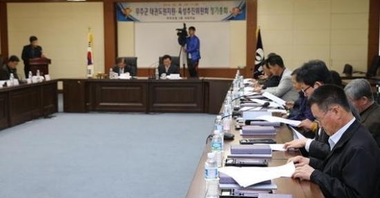 무주군 태권도원 지원 육성추진위원회(이하 추진위) 총회가 26일 무주군청 대회의실에서 열렸다.