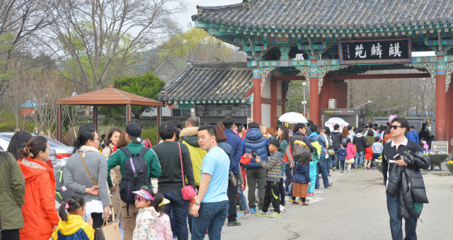 포근한 봄날씨를 보인 30일 AI여파 휴장했던 전주 동물원이 개장하자 봄 나들이 나온 많은 시민들이 줄을 지어 입장하고 있다.