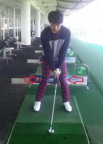 사진은 양 무릎을 약간 조여 주는 자세의 어드레스인데, 우리가 필요로 하는 자세가 된다. 많은 골퍼들이 무릎을 조이는 느낌을 주지 않고, 그냥 어드레스를 취하게 되면 무릎이 벌어지게 된다. 무릎이 벌어지게 되면 백스윙 동작의 하체의 리드가 좋지 않아 좋은 스윙을 하기 어려워진다.