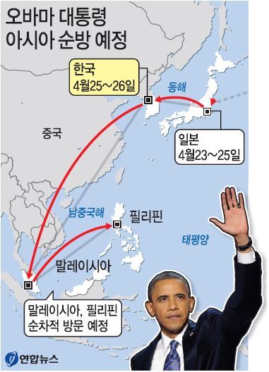 오바마 대통령은 또 방한에 앞서 23일부터 2박3일간 일본을 국빈방문할 것으로 전해졌다.