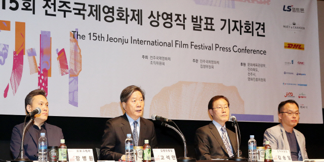 | ▲ 3일 전주디지털독립영화관에서 열린 제15회 전주국제영화제 상영작 발표 기자회견에서 고석만 집행위원장이 개막작인 ‘신촌좀비만화’를 소개하고 있다. 추성수기자 | ||