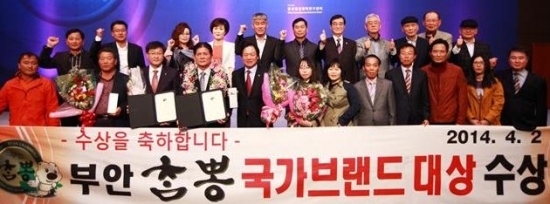 ▲ 부안군은 2014 국가브랜드 대상 오디(뽕) 부문에서 대상을 수상했다.