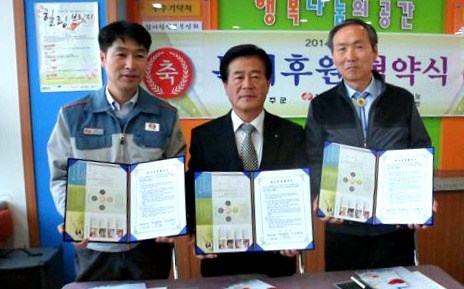 무주군 행복나눔푸드마켓(대표 오용식)과 한전KPS 무주양수지점(지점장 한재필) 두 기관은 지난 9일 무주읍 행복나눔 푸드마켓에서 복지후원 협약을 체결했다.