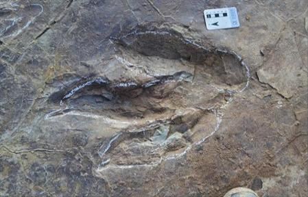 | ▲ 군산 산북동에서 발견된 대형 수각류 공룡 발자국 화석. | ||