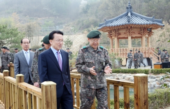 15일 임실 35사단에서 열린 충경정 준공식에 김완주도지사와 정한기 35사단장이 준공식행사를 갖고 담소를 나누고 있다. 사진제공=전북도