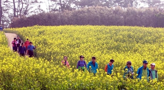 부안군 변산면 격포리 수성당 주변이 노란 유채꽃 물결로 넘실대면서 상춘객들의 발길을 사로잡고 있다.