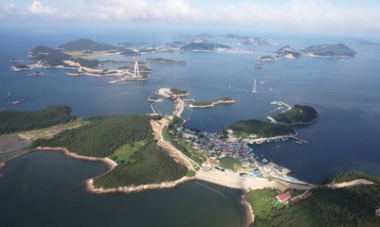 | ▲ 헬기에서 내려다 본 신시-무녀구간 고군산군도 연륙교 공사 현장. 전북일보 자료사진 | ||