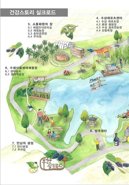 조성면적은 9만1959㎡ 규모로 총사업비 141억원이 투입돼 뽕테마센터(전시·체험·교육실)와 체험농장, 생태습지, 잔디광장, 주차장 및 진입도로, 수상레포츠장, 사랑방 및 캠핑장 등이 들어선다.