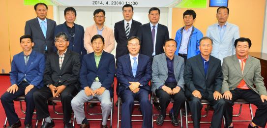 ▲ 23일 고창군 14개 읍면 이장협의회장들이 2014년 민원 모니터요원으로 위촉 돼 이강수 군수와 기념촬영을 하고 있다.