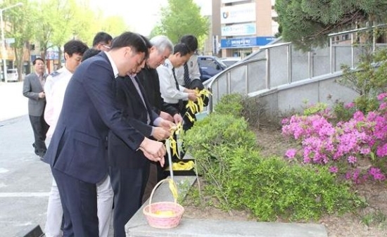 전주 완산경찰서도 23일 경찰서 앞에서 세월호 침몰 사고 실종자들의 무사귀환을 염원하는 노란리본 달기 캠페인에 동참했다.