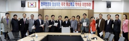 임실군청에서 열린 성명 발표에는 임실군의회와 기독교연합회 등 14개 단체가 참여, 공동추진위를 발족하고 전주시의 항공대 임실이전을 강력히 규탄했다.