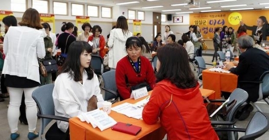| ▲ 지난 30일 임실군청에서 ‘미니 취업 박람회’가 열린 가운데, 관내 여성들이 업체 부스를 찾아 취업 상담을 하고 있다. | ||