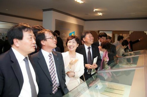 ▲ 전주대 개교 50주년 행사에 참석한 지역 인사·동문들이 학교 역사관을 둘러보고 있다.