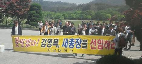 이들은 “학교 정상화를 위한 행보의 첫 걸음으로 비리재단이 임명한 김영복은 사퇴하고, 전 구성원이 합의하고 인정할 수 있는 도덕적이고 헌신적인 새로운 총장이 선임돼야 할 것”이라고 요구했다.