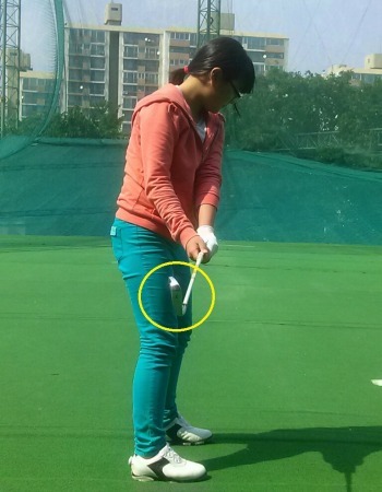 이 동작은 테이크백 시 손목의 동작을 최소화하려는 동작과 몸에 과도하게 힘을 주게 되면 쉽게 생기는 습관일 것이다. 이 같은 동작은 클럽 페이스를 임팩트 순간에 닫히게 만들어 볼이 훅이 나기 쉬우며, 볼의 탄도도 낮아져 거리의 손실을 많이 보게 된다.