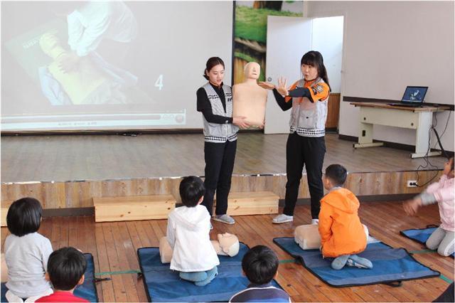 이날 교육은 심폐소생술의 의미와 필요성, 응급상황 발생 시 119 신고요령에 대한 이론교육을 실시한 후 가정생활 등에서 급성심정지 환자 발생 시 실제상황에 적응하기 위해 CPR마네킹을 이용, 직접 심폐소생술을 실습해 보는 시간을 가짐으로써 어렸을때 부터 심폐소생술 방법을 몸에 익힐 수 있도록 했다.