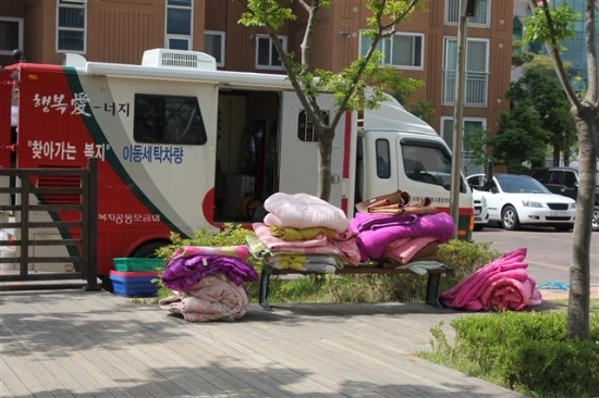 고창군자원봉사종합센터(소장 김종균)는 지난 16일 고창읍 휴먼시아 아파트 단지 내에서 이동빨래방차를 활용하여 20세대의 이불 및 빨래를 세탁했다.