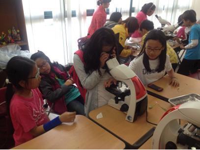 ▲ 부안 청소년문화의 집에서 청소년들이 현미경 관찰 등 ‘찾아가는 수련활동’ 프로그램을 체험하고 있다.