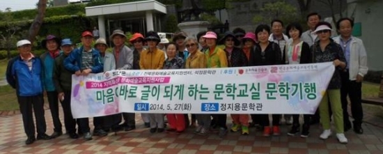 2014년 지역특성화 문화예술 교육지원 공모사업으로 추진된 이번 문학기행에는 30여명의 문학교실 수강생들이 참가해 정지용문학관을 둘러보고 인근 산책길을 걸으며 시낭송 등으로 실시됐다.