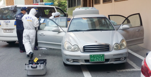 ▲ 유병언 전 세모그룹 회장이 타고 도주한 것으로 추정되는 은색 소나타 차량이 전주시 송천동의 한 장례식장 주차장에서 발견돼 지난 30일 전주지검 청사 내로 옮겨져 경찰의 감식이 진행되고 있다. 추성수기자chss78@