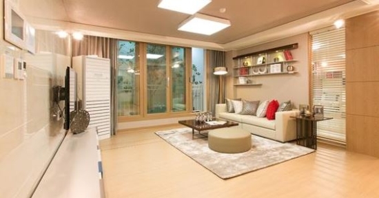 공간 활용도를 높인 설계는 이외에도 곳곳에서 눈에 띈다. 74㎡의 경우 가변형 벽체를 통해 거실을 확장하더라도 자녀 방이었던 공간 역시 우물천장으로 만들어 통일성과 개방감을 그대로 느낄 수 있다. 여기에 현관부터 복도, 주방까지 이어진 수납공간은 가히 일품이다. 안방 드레스룸에도 대형 붙박이장과 시스템장을 선택형으로 설치할 수 있어 기존 대형평형대의 아파트보다 넓은 수납공간과 높은 수준의 마감재를 선보이고 있다.