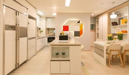 단지 내 가장 큰 평면인만큼 고급스런 인테리어와 함께 넉넉함이 느껴진다. 주방 크기도 넓고 ㄷ자형 구조로 설계 돼 주부들의 동선을 충분히 고려했으며, 보조주방 공간까지 넉넉하게 마련했다.